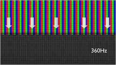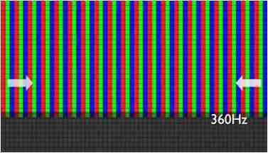 传统液晶驱动是从左到右单向进行,,,,在画面更新速度愈来越愈快的情况下,,位于驱动线路末端的右下角区域,,,,画素的闸极来不及在短时间内获得足够电压,,无法显示出正确的颜色资讯。。。