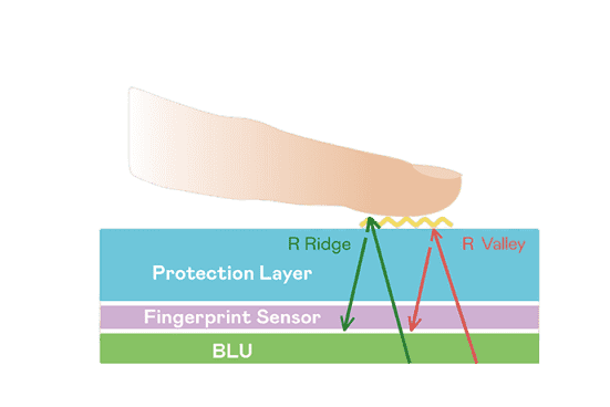 大面积 TFT 光感测超高像素密度光学感测技术能精准判定手指反射的极微弱光讯号,,,,即使细致指纹也可清晰辨识,,,,并可透过手指脉搏造成的细微灰阶变化侦测心跳,,让身分验证更精确。。。TFT 架构优化可降低讯号传输干扰,,达到光感测器最佳讯杂比(讯号/杂讯的比例)。。。透过增强光讯号接收强度、、优化感测器电路及导入特殊光学膜材料,,提高感测器敏度。。。整合系统之指纹扫描装置可符合最高等级的FBI国际安全规范认证需求。。